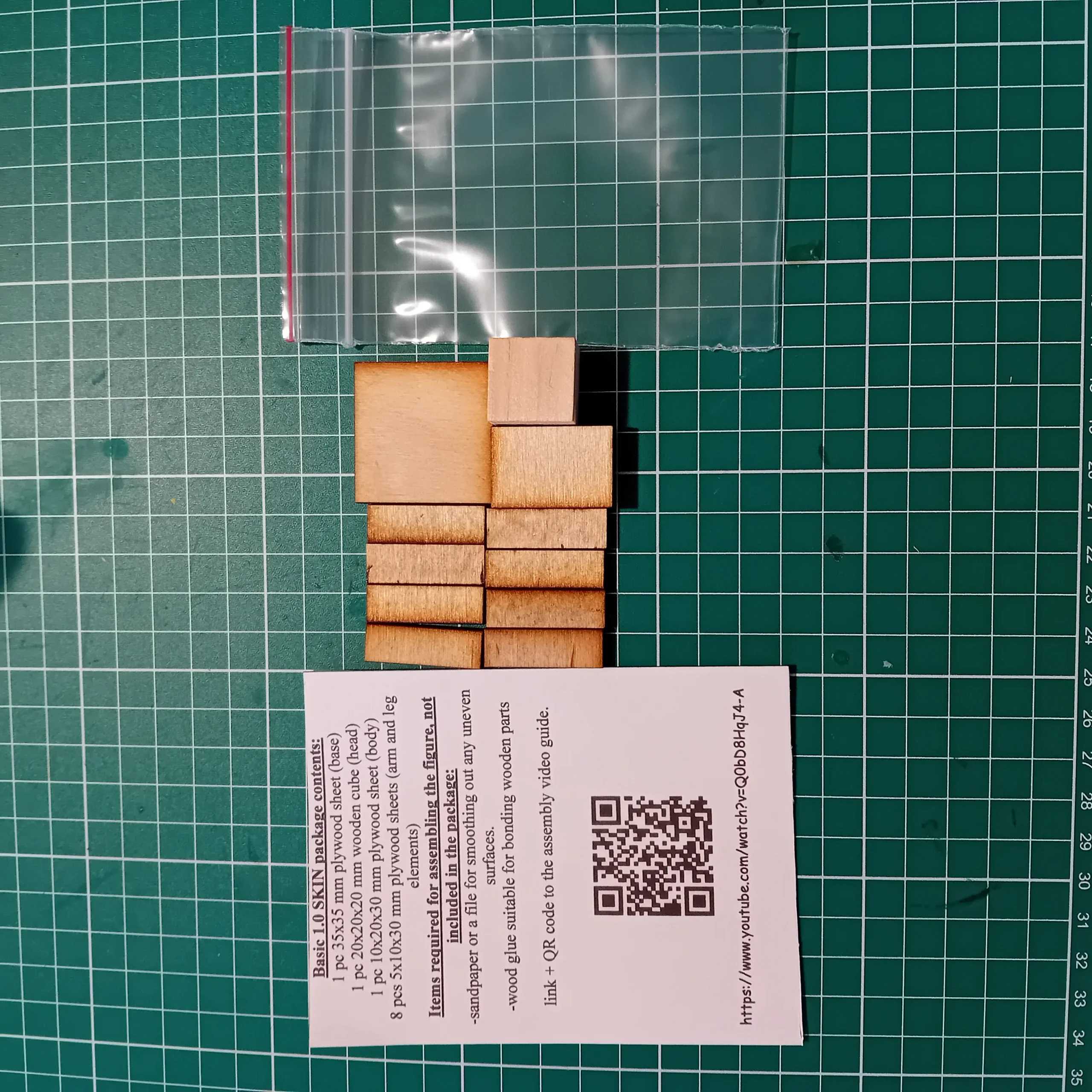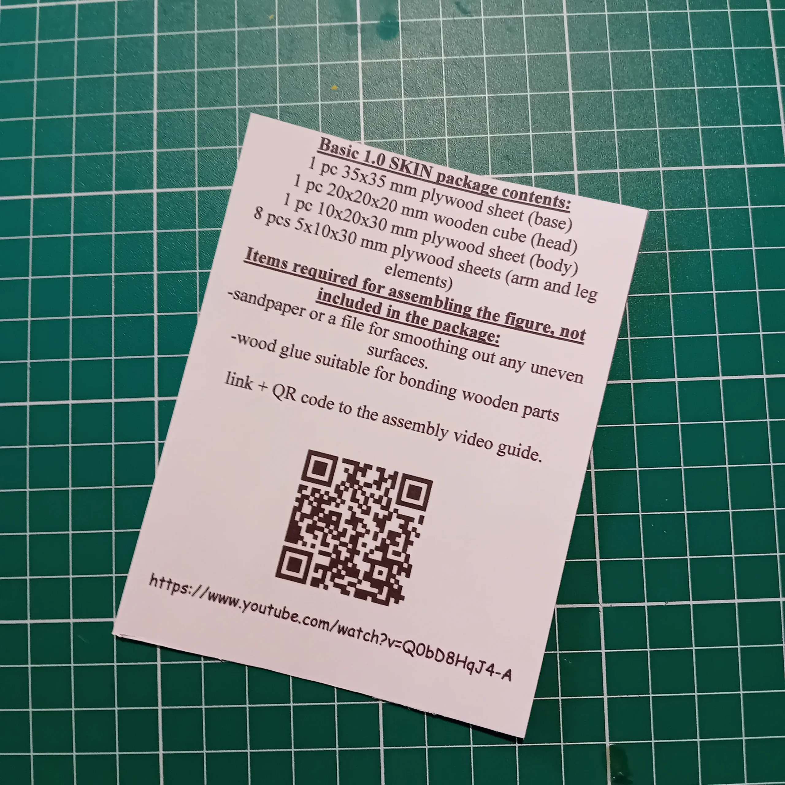 This short, 4-minute tutorial video shows you step by step how to assemble the Basic 1.0 SKIN DIY wooden figure. The video is recorded in real time with no speed-up and no narration — only background music — making it easy for anyone to follow. The kit includes all the wooden parts you need, and you’ll only need a bit of wood glue and sandpaper for the assembly. You can access the video anytime using the QR code included with the product.